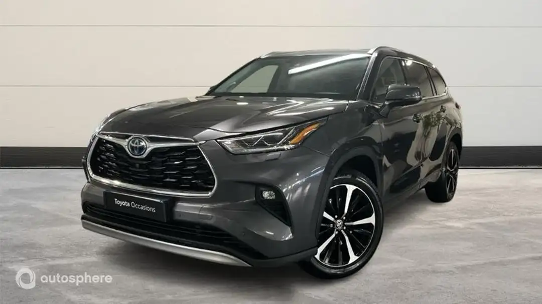 Marque: Toyota Modèle: Highlander Version: 2.5 Hybrid 248ch Lounge AWD-I MY22 Energie: Hybride Année: 2022 Couleur: Gris Atlas métallisé Carrosserie: 4x4 Tout Terrain Boite: Automatique Portes: 5 Places: 7 Cylindrée: 2487 Garantie: Label Toyota Occasions 36 mois TFR Equipements: 11 Haut parleurs, 3ème banquette à l'arrière, ABS, Accoudoir arrière, Accoudoir central AV avec rangement, Affichage tête haute, AFIL, Aide au démarrage en côte, Airbag conducteur, Airbag genoux, Airbag passager, Airbags latéraux avant, Airbags rideaux, Airbags rideaux AR, Appel d'Urgence Localisé, Appui-tête conducteur réglable hauteur, Appui-tête passager réglable en hauteur, Assistance de maintien de trajectoire, Bacs de portes arrière, Bacs de portes avant, Banquette 60/40, Banquette AR rabattable, Barres de toit, Becquet arrière, Blocage électronique du différentiel AR, Boite à gants fermée, Buses de lave-glace chauffantes, Caméra de recul, Caméra vue panoramique 360°, Capteur de luminosité, Capteur de pluie, Clim automatique tri-zones, Coffre assisté électriquement, Commande du comportement dynamique, Compte tours, Démarrage sans clé, Détecteur de sous-gonflage, Ecran couleur, Ecran multifonction couleur, Ecran tactile, Essuie-glace arrière, Feux arrière à LED, Feux de jour, Feux de route automatiques, Filets de coffre, Filtre à particules, Filtre à Pollen, Fixations Isofix aux places arrières, GPS Cartographique, Guidage pour manoeuvre de stationnement, Interface Media, Lave-phares, Lunette arrière surteintée, Mode de conduite, Noir Attitude métallisé, Ouverture du coffre mains-libres, Pare-brise chauffant, Phares antibrouillard LED, Phares avant LED, Poignées ton carrosserie, Pommeau de levier vitesse en cuir, Porte-gobelets avant, Prise 12V, Prise USB, Radar de stationnement AR, Radio numérique DAB, Reconnaissance panneaux de signalisation, Régulateur de vitesse, Régulateur de vitesse adaptatif, Régulateur de vitesse et de distance, Rétroviseurs dégivrants, Rétroviseurs électriques, Rétroviseurs rabattables électriquement, Siège cond. avec réglage lombaire électr, Siège conducteur chauffant, Siège conducteur électrique, Siège passager à réglages électriques, Siège passager chauffant, Sièges arrière chauffants, Sièges avant à ventilation active, Sièges rang 2 rabattables à plat, Sièges rang 3 rabattables à plat, Système avancé de détection d'obstacles, Système d'accès sans clé, Système de contrôle des angles morts, Système de détection de somnolence, Système de prévention des collisions, Système de prévention des collisions AR, Verrouillage auto. des portes en roulant, Verrouillage centralisé à distance, Vitres arrière électriques, Vitres arrière surteintées, Vitres arrière teintées, Vitres avant électriques, Volant chauffant, Volant cuir, Volant multifonction, Volant réglable en profondeur et hauteur, Gris Atlas métallisé, Toit panoramique ouvrant électriquement